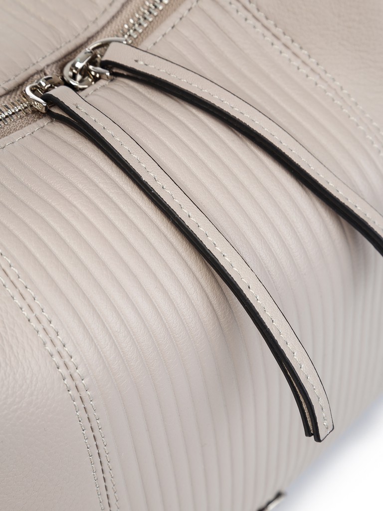 Женская сумка торговой марки Labbra из натуральной кожи. Модель имеет одно отделение, которое закрывается на металлическую молнию и содержит внутри карман на молнии и два открытых кармана. Два внешних кармана на металлической молнии расположены по бокам сумки. Высота ручки - 14 см. Длина наплечного ремня из натуральной кожи -  95 см., ширина - 1,5 см. Модель имеет ножки на дне. Не вмещает формат А4.