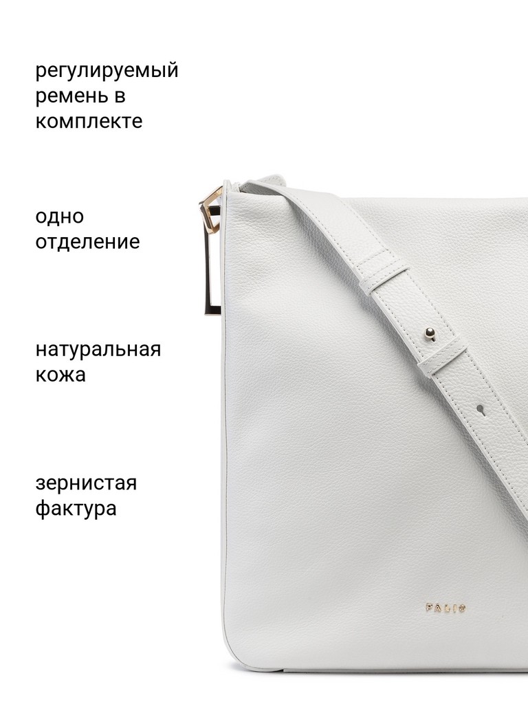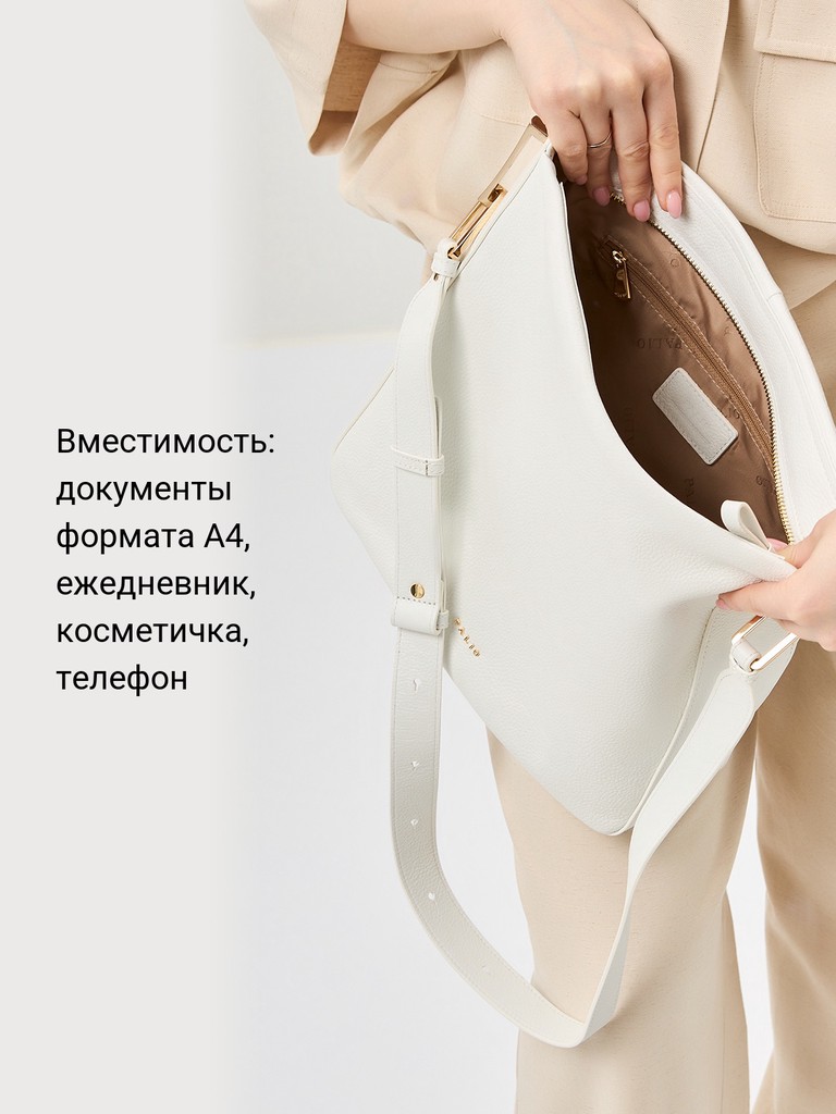 Женская сумка торговой марки Palio из натуральной кожи. Модель застегивается на молнию. Содержит внутри один отдел, в котором имеются карман на молнии и два открытых кармана. На задней стенке есть карман на молнии. Высота ручки – 47 см. Максимальная длина регулируемого плечевого ремня  - 96 см, ширина – 4 см. Модель не имеет ножки на дне. Вмещает формат А4.