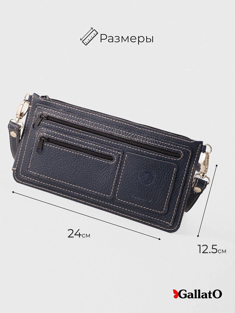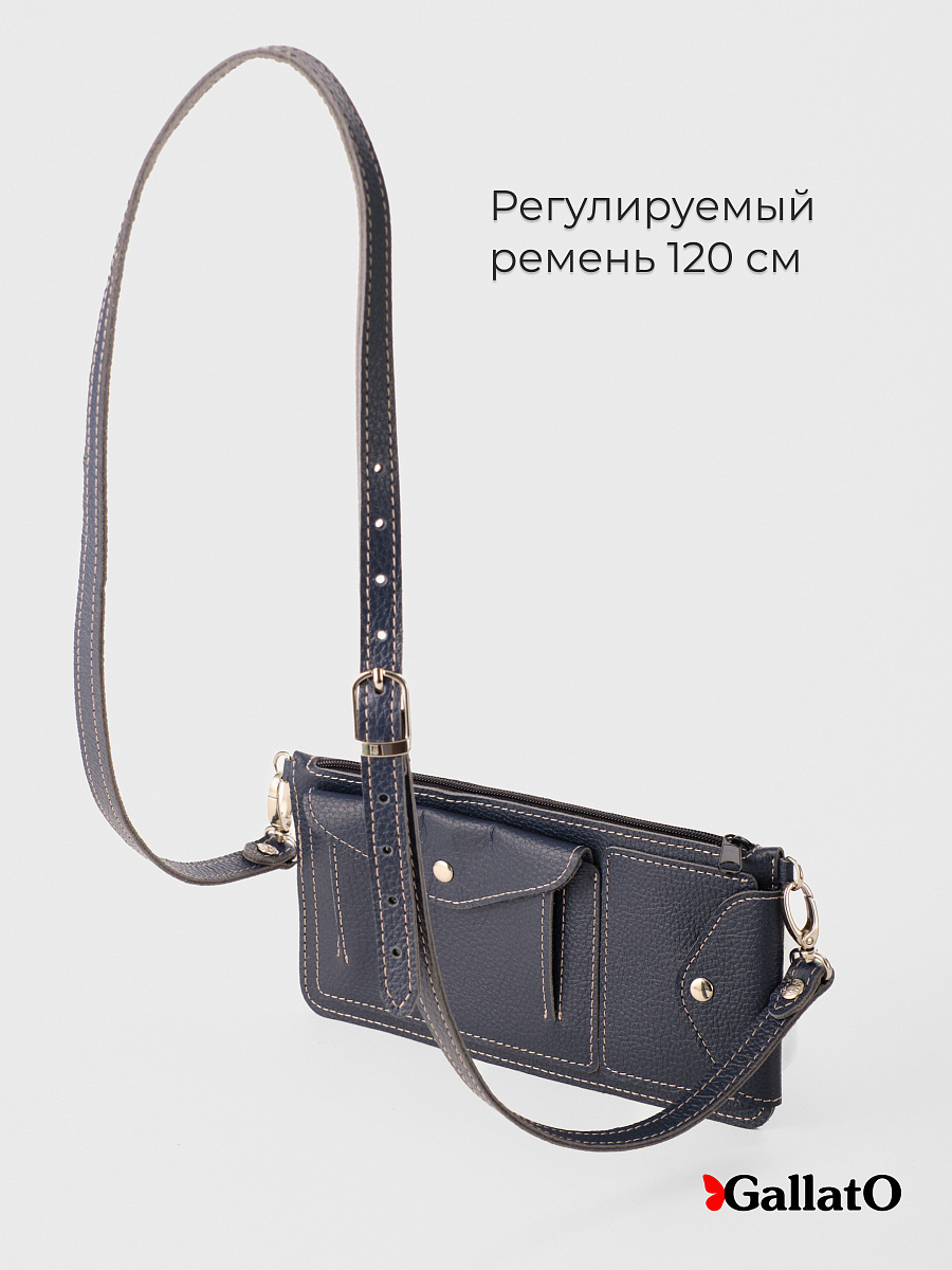 Кожаная сумка-багет Greta от ТМ Gallato. Плоская компактная сумка на длинном плечевом регулируемом  ремне из натуральной кожи. Длина ремня меняется от 106-128 см. У сумки 5 внешних карманов и 1 основное отделение под молнией. Внешние карманы - 2 на молнии, 2 на кнопках и 1 открытый. Идеальный вариант для путешествий, так как в основное отделение идеально ровно и без заломов помещается посадочный билет на самолет или билет на поезд. Удобно проходить таможенные досмотры, или брать с собой на лёгкую прогулку с детьми или собакой.