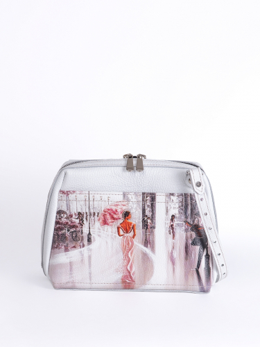 Женская сумка Meri принт. Стильная сумка изготовлена из натуральной кожи, сумка закрывается на молнию . Внутри имеется 3 отделения, одно из них закрывается на молнию, что позволяет использовать его как карман для мелочи и других нужных вещей. Наружный карман закрывается на молнию. Разнообразие цветов кожи позволяют носить сумку с любой одеждой. В комплекте прилагается элегантный плечевой ремешок , который надежно крепится к сумке карабинами, длина ремешка 125 см. Размер: 22 * 17 * 11 см
