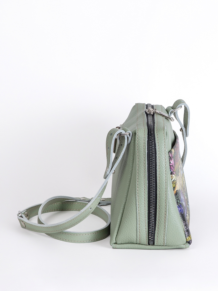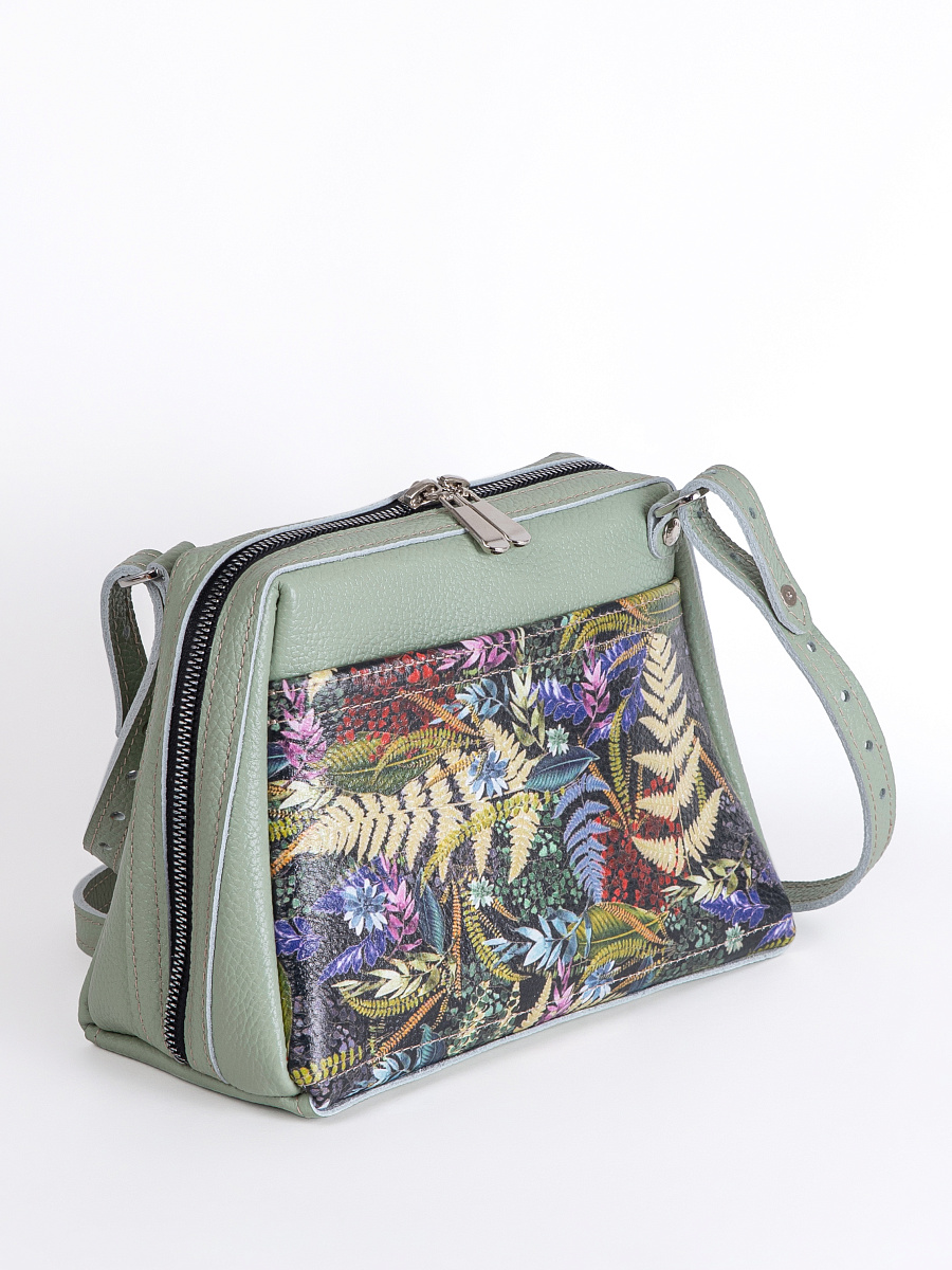 Женская сумка Meri принт. Стильная сумка изготовлена из натуральной кожи, сумка закрывается на молнию . Внутри имеется 3 отделения, одно из них закрывается на молнию, что позволяет использовать его как карман для мелочи и других нужных вещей. Наружный карман закрывается на молнию. Разнообразие цветов кожи позволяют носить сумку с любой одеждой. В комплекте прилагается элегантный плечевой ремешок , который надежно крепится к сумке карабинами, длина ремешка 125 см. Размер: 22 * 17 * 11 см