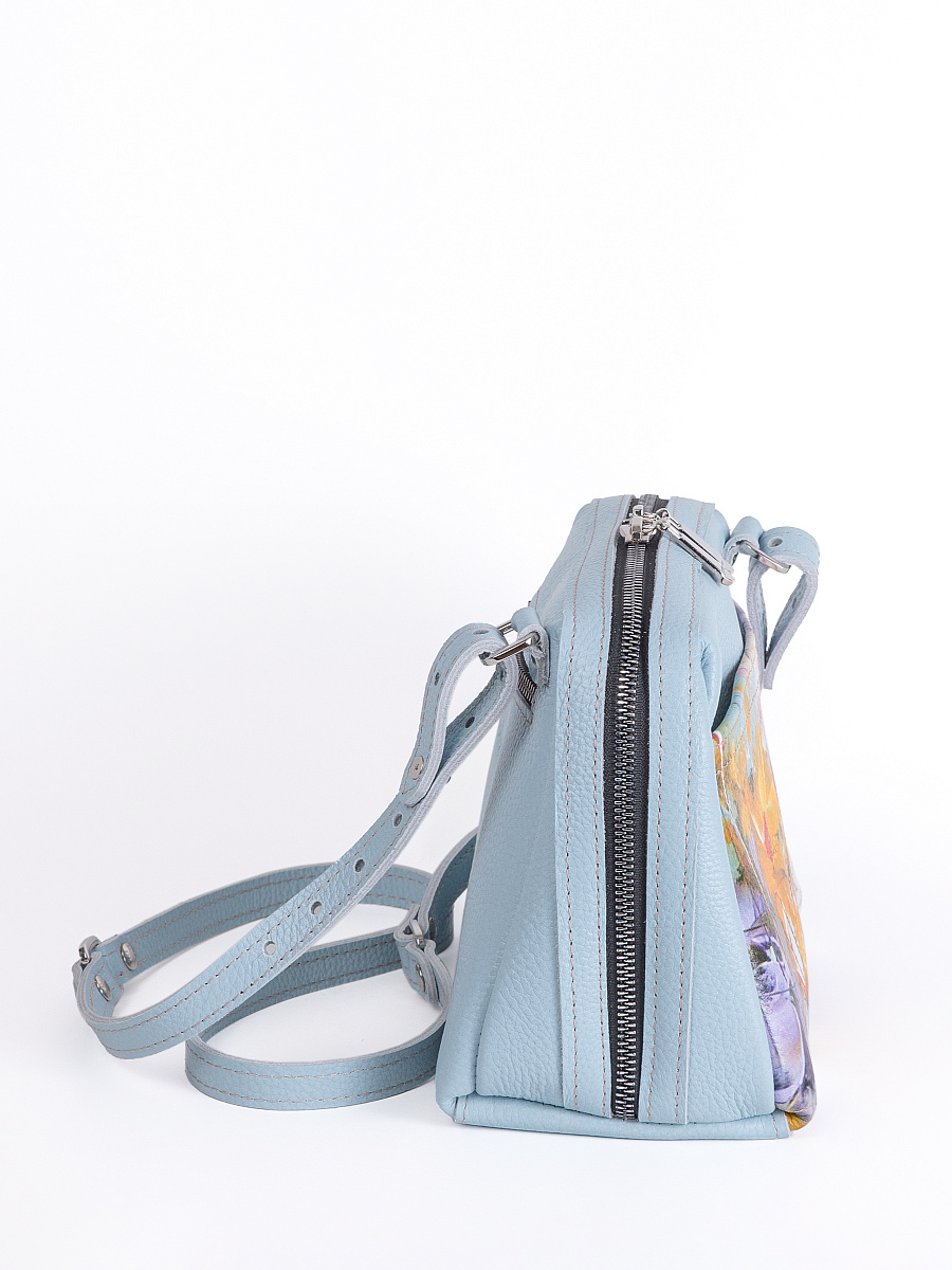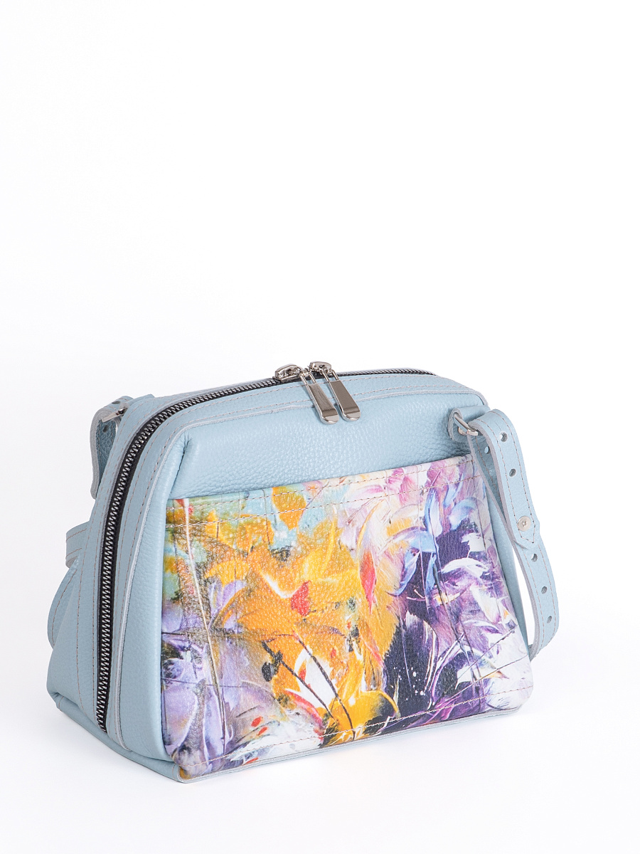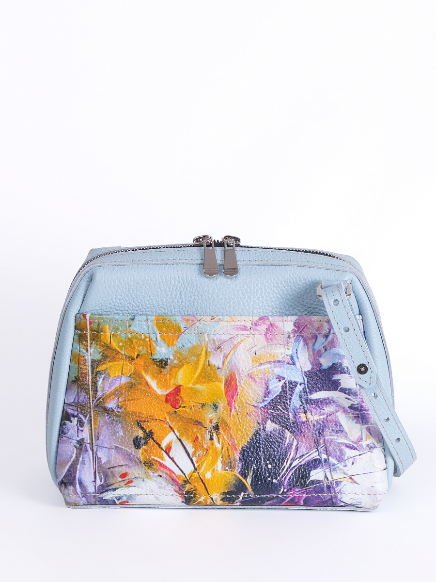 Женская сумка Meri принт. Стильная сумка изготовлена из натуральной кожи, сумка закрывается на молнию . Внутри имеется 3 отделения, одно из них закрывается на молнию, что позволяет использовать его как карман для мелочи и других нужных вещей. Наружный карман закрывается на молнию. Разнообразие цветов кожи позволяют носить сумку с любой одеждой. В комплекте прилагается элегантный плечевой ремешок , который надежно крепится к сумке карабинами, длина ремешка 125 см. Размер: 22 * 17 * 11 см