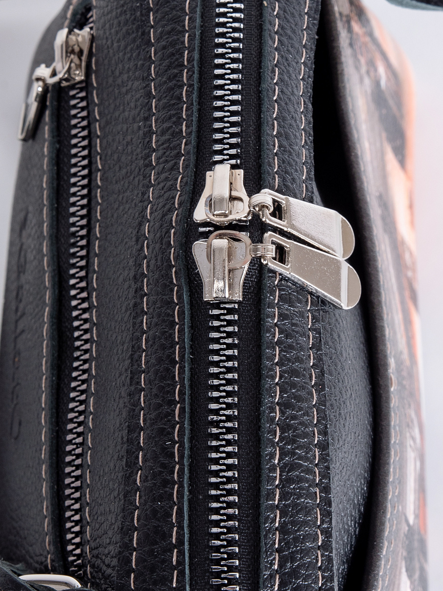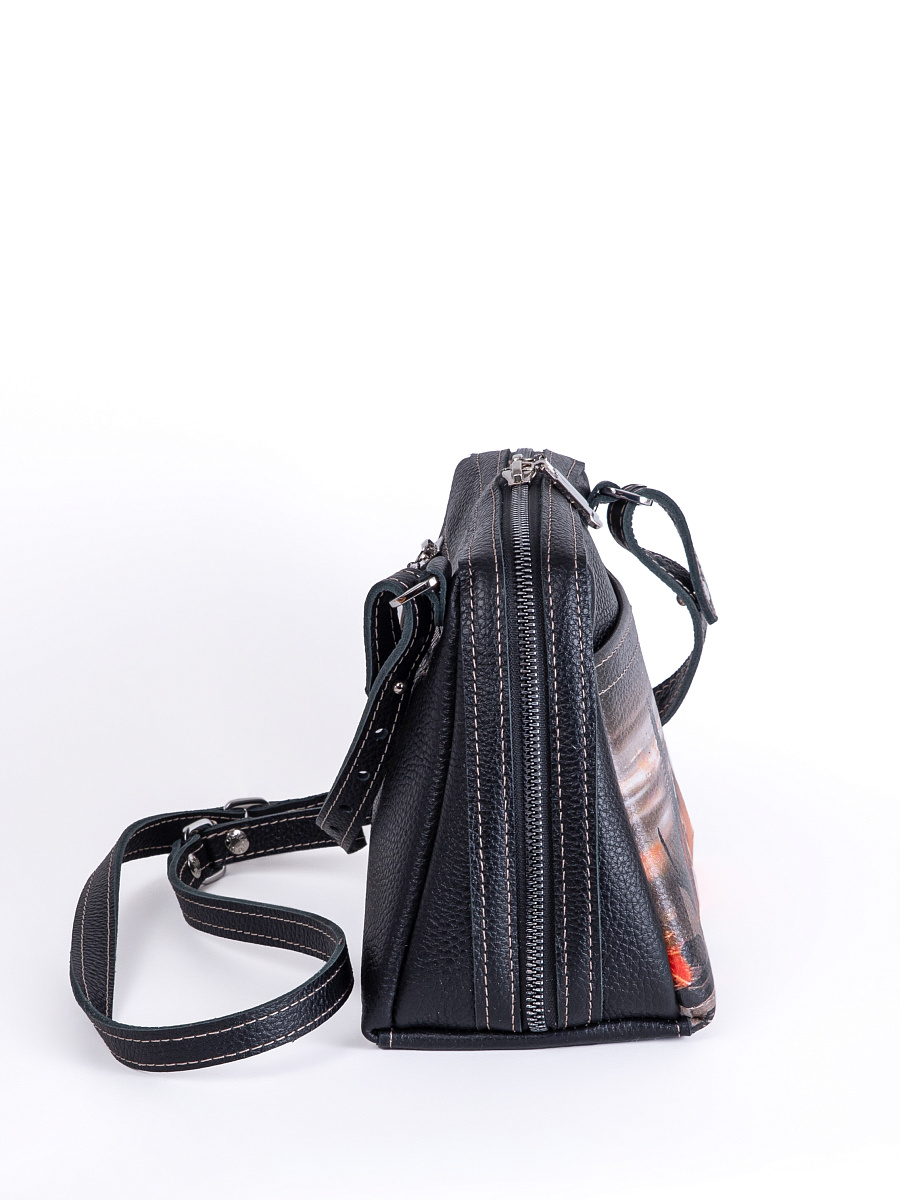 Женская сумка Meri принт. Стильная сумка изготовлена из натуральной кожи, сумка закрывается на молнию . Внутри имеется 3 отделения, одно из них закрывается на молнию, что позволяет использовать его как карман для мелочи и других нужных вещей. Наружный карман закрывается на молнию. Разнообразие цветов кожи позволяют носить сумку с любой одеждой. В комплекте прилагается элегантный плечевой ремешок , который надежно крепится к сумке карабинами, длина ремешка 125 см. Размер: 22 * 17 * 11 см