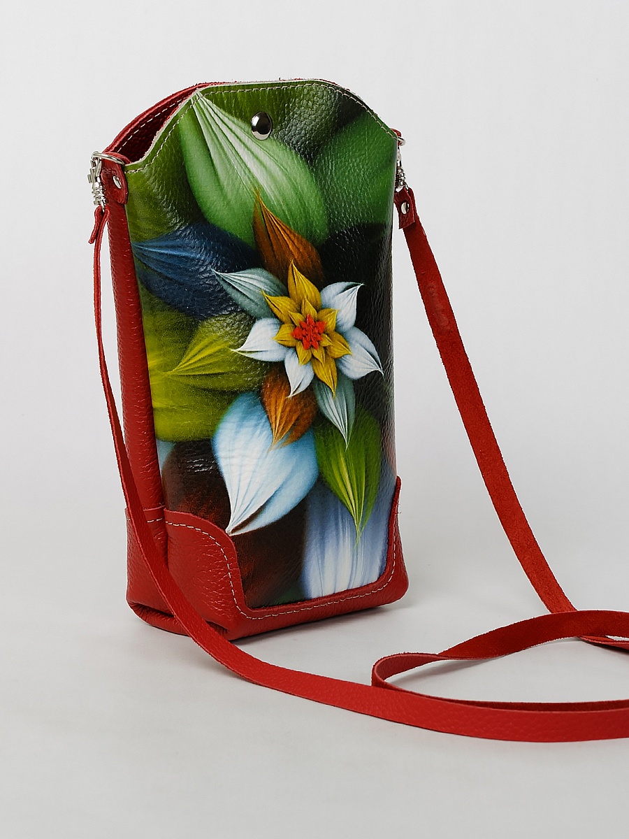 Элегантная сумка из натуральной кожи с модными принтами станет универсальным дополнением вашего образа. Модель закрывается на удобную магнитную кнопку, внутри есть практичный карман для мелочей. Декоративный контрастный шов придает изделию особый шарм. В комплекте – съемный плечевой ремень (120 см) с карабинами для комфортной носки.