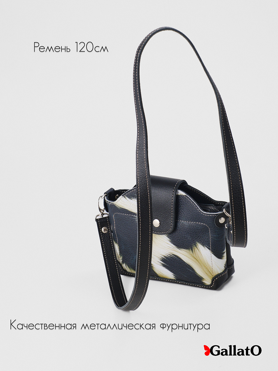 Стильная сумка MILLA принт. Изготовлена из натуральной кожи, сумка закрывается на молнию и фиксируется кнопкой. Внутри имеется карман. Наружный кармин закрывается на молнию Разнообразие цветов кожи и принтов, позволяют носить сумку с любой одеждой. В комплекте прилагается элегантный плечевой ремешок , который надежно крепится к чехлу карабинами, длина ремешка 120 см. Размер: 16 * 6 * 20 см.