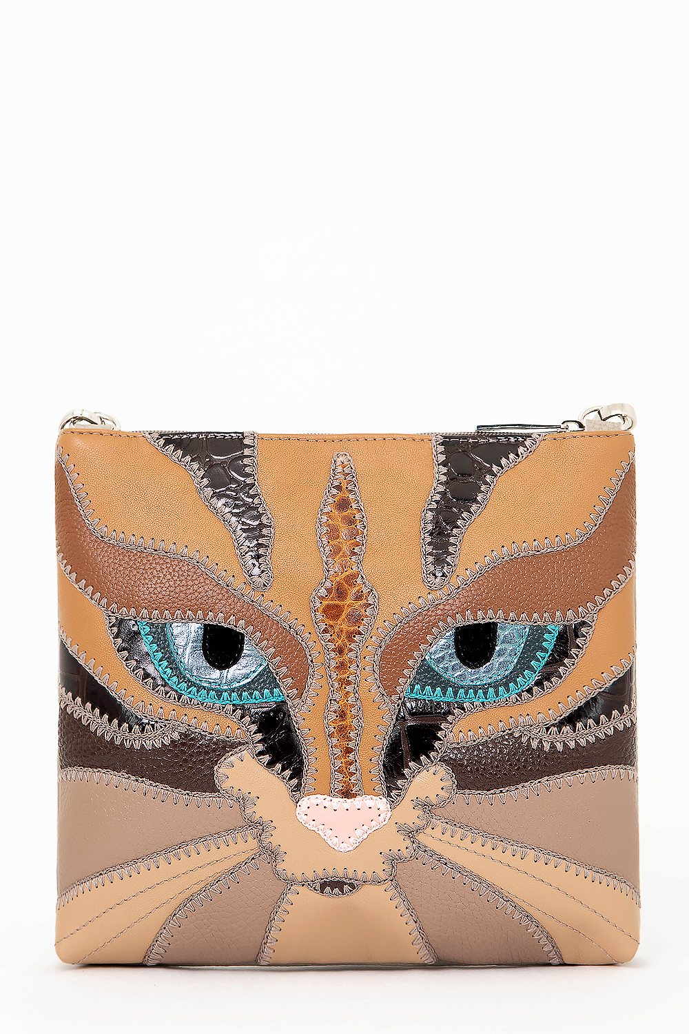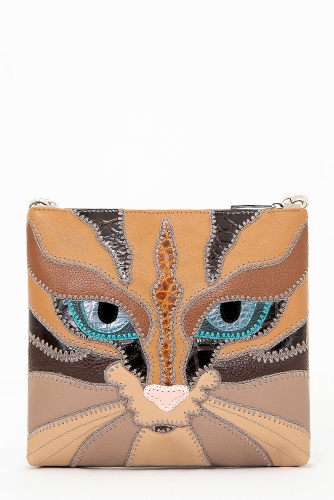Сумка женская с аппликацией "Кот №50" со съемным регулируемым ремнем через плечо. Сумка застегивается на молнию и имеет одно отделение. На задней стенке расположен карман на молнии. Сумка на подкладке. Внутри есть карман на молнии и накладной карман для мобильного телефона и визиток.