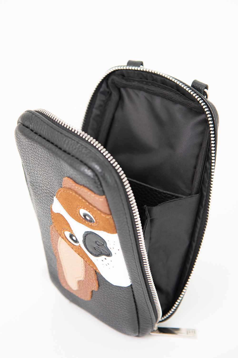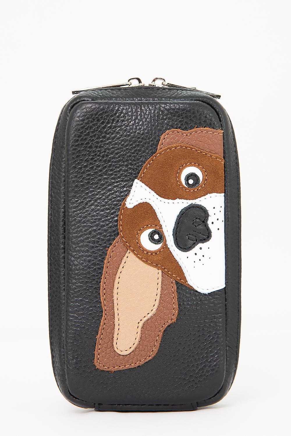 Сумка женская с аппликацией "Бигль". Со съемным регулируемым ремнем через плечо. Сумка имеет одно отделение, внутри накладной карман . На задней стенке карман на молнии. Сумка на подкладке. 21х13х4