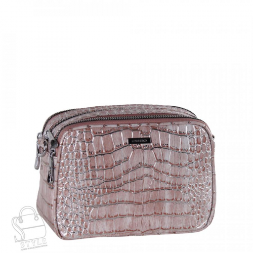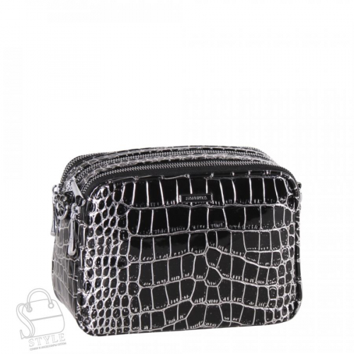 Модель кросс-боди, выполнена из экокожи. Дополнена  серебристой фурнитурой. Данная модель закрывается на молнию. Каркас полужесткий. Носится на плече. В комплекте имеется съемный ремень с регулировкой длины.