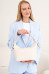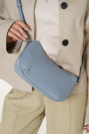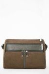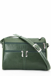 Сумка женская небольшого размера со съемным регулируемым ремнем-стропой через плечо. Сумка застегивается на металлическую молнию и имеет три отделения. Молния имеет декоративный пуллер из кожи. Ремень сумки интересно сочетается с корпусом сумки,и имеет боковые кожаные шлевки в цвет ремня. Сумка без подкладки. Внутри сумки расположены два кармана на молнии. Центральная секция застегивается дополнительно на молнию и имеет еще два внутренних кармана. 20х15х7 см
