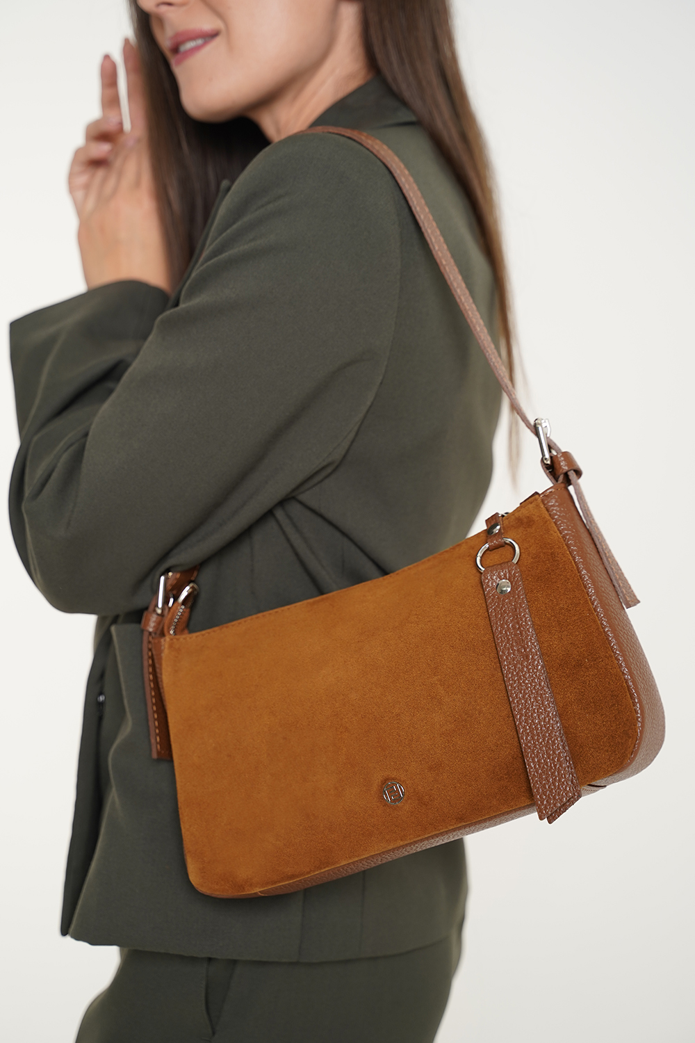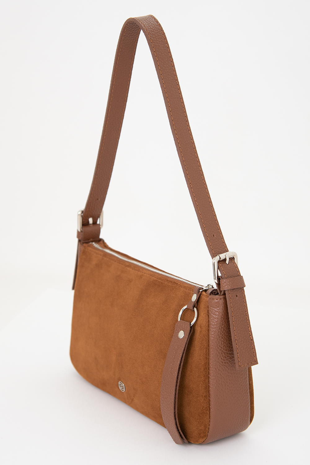 Сумка женская с удобной регулируемой ручкой для носки на плече или в руке. Сумка закрывается на молнию и имеет одно отделение. На задней стенке карман на молнии. Сумка на подкладке. Внутри сумки карман на молнии и накладной карман на молнии "карман в кармане".