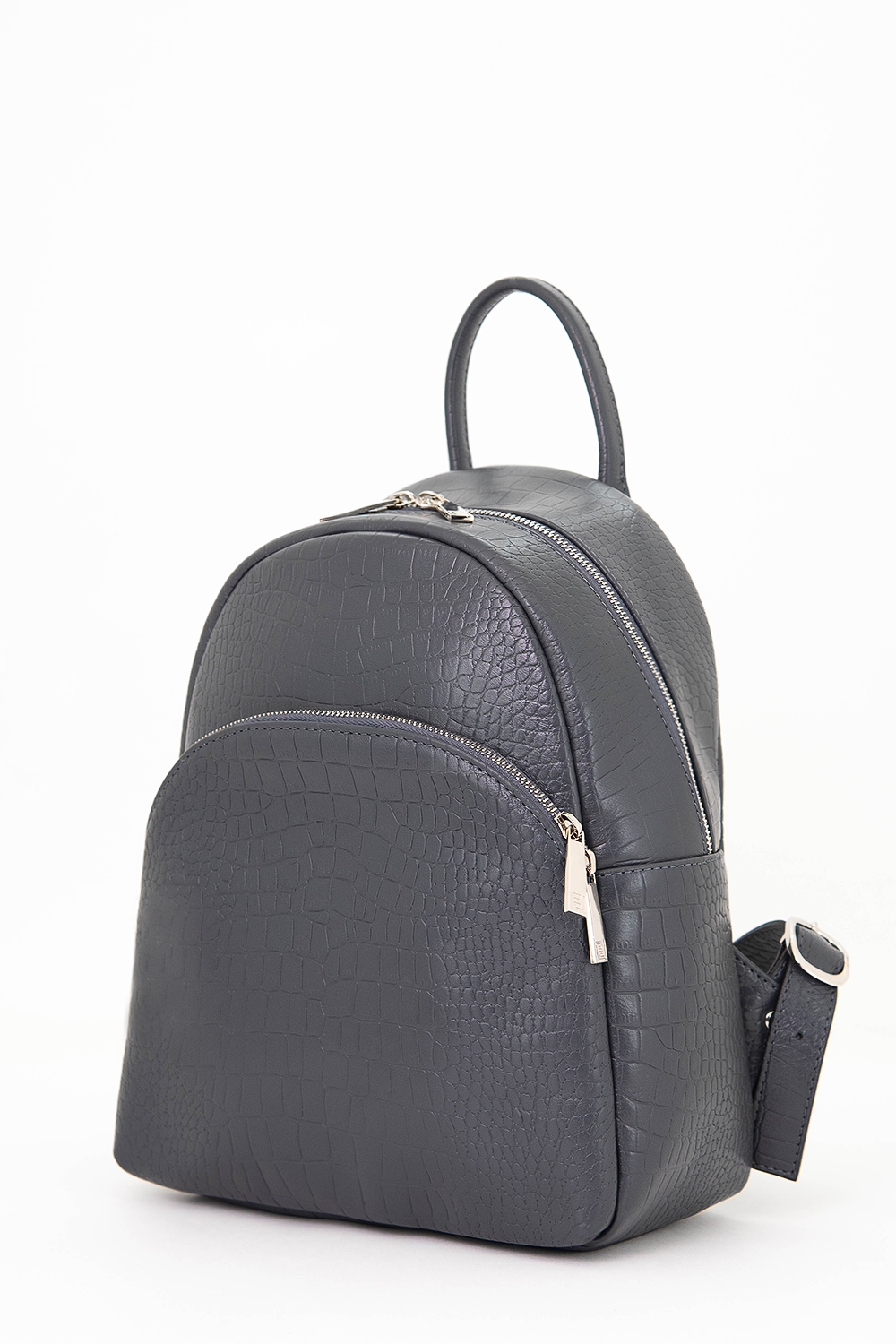 Сумка-рюкзак женская среднего размера. Рюкзак застегивается на молнию и имеет одно отделение. На передней стенке расположен карман на молнии. Лямки рюкзака регулируются по длине. Сумка-рюкзак на подкладке. Внутри сумки расположен карман на молнии и накладной карман на молнии "карман в кармане". 25х31х14 см