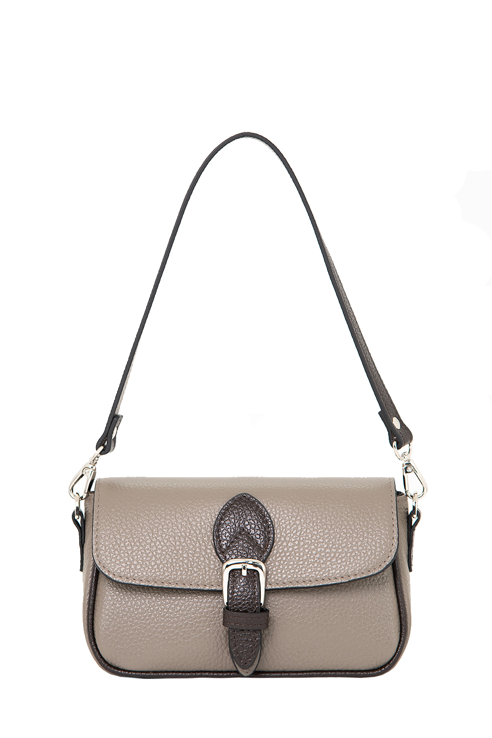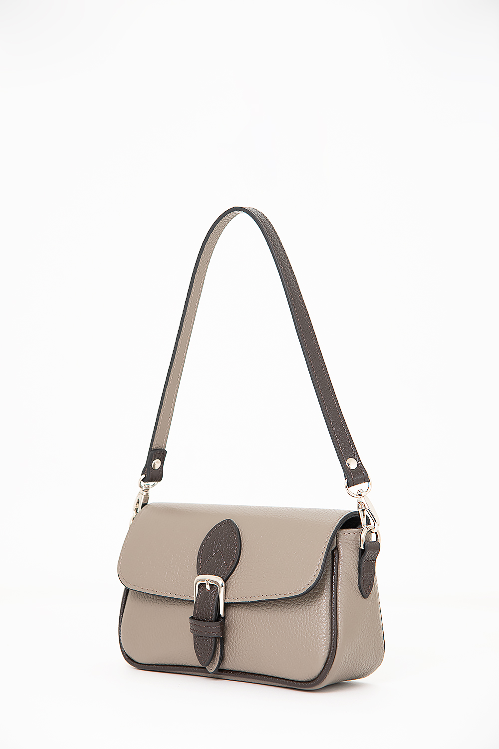 Сумка женская со съемным регулируемым ремнем через плечо и съемной ручкой. Сумка закрывается клапаном на магнитную кнопку и имеет одно отделение. На задней стенке открытый карман для банковских карт. Сумка на подкладке. Внутри сумки накладной карман. 21,5х13х8см