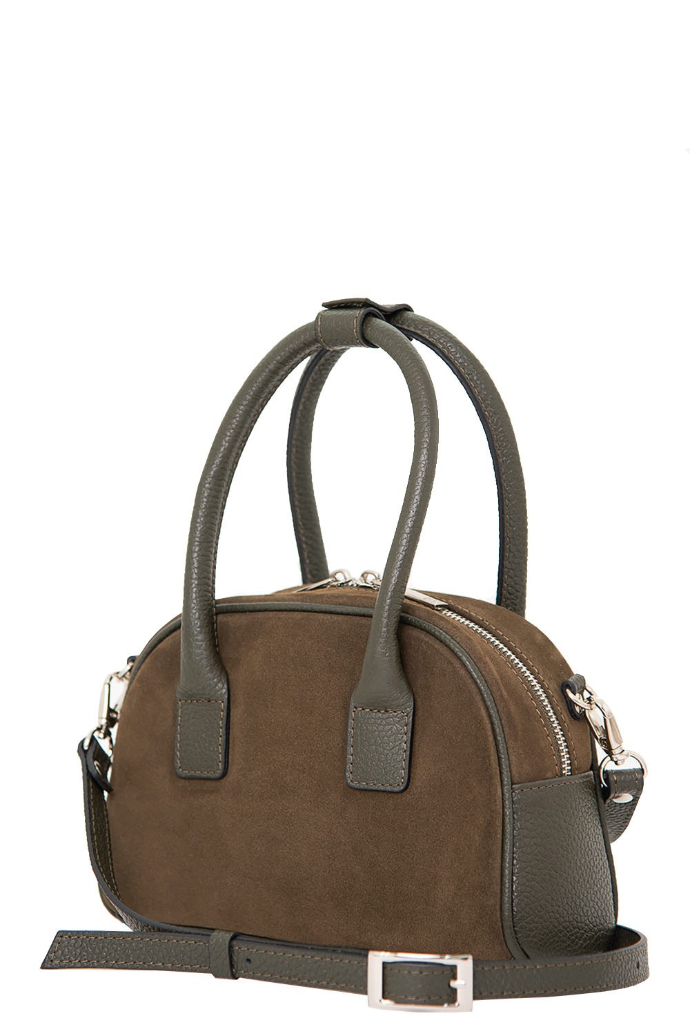 Сумка женская полужесткой формы со съемным регулируемым ремнем через плечо. Имеется внутренний карман, с застёжкой на молнии. Сумка на подкладке, закрывается на молнию, с двумя бегунками, и имеет одно отделение. Клапан застёгивается и удерживает ручки вместе. 23х15х8см
