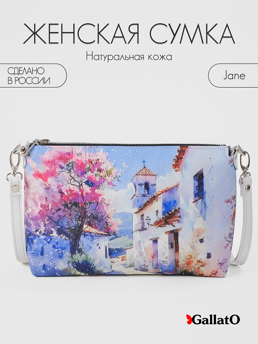 Женская сумка Jane принт Стильная сумка изготовлена из натуральной кожи, сумка закрывается на молнию . Внутри имеется карманы для мелочи и других нужных вещей. Наружный кармин закрывается на молнию Разнообразие цветов кожи позволяют носить сумку с любой одеждой. В комплекте прилагается элегантный плечевой ремешок , который надежно крепится к сумке карабинами, длина ремешка 120 см. Размер: 26*18 * 8 см