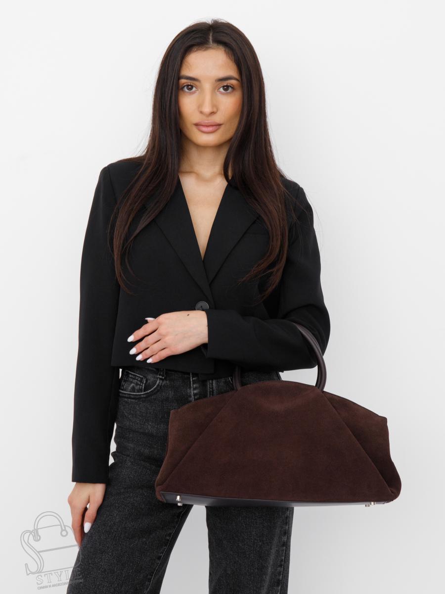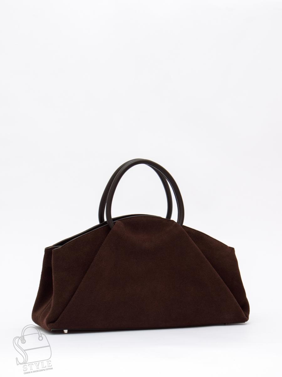 Модель с акцентными ручками, выполнена из натуральной замши. Декорирована складками на корпусе. Дополнена серебристой фурнитурой. Данная модель закрывается на молнию, носится в руке за встроенные ручки. Или на плече, в комплекте имеется ремень с регулировкой длины. Каркас полужесткий.