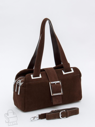Сумка среднего размера, выполнена из натуральной замши. Декорирована логотипом на передней части. Дополнена серебристой фурнитурой. Данная модель закрывается на молнию. Каркас полужесткий. Носится на плече или через плечо. В комплекте имеется плечевой ремень тонкий с регулировкой длины и удлиненная ручка. На дне предусмотрены ножки.