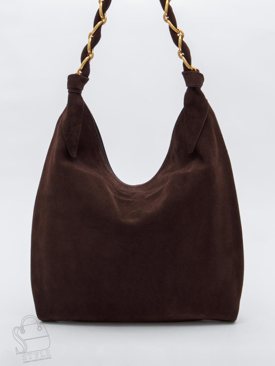 Вместительная модель, выполнена из замши. Декорирована цепочкой на ручке. Дополнена золотистой фурнитурой. Данная модель закрывается на молнию. Каркас мягкий. Носится в руке или на плече за встроенную удлиненную ручку.