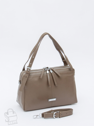 Базовая сумка, выполнена из натуральной кожи. Дополнена серебристой фурнитурой.  Данная модель закрывается на молнии. Носится в руке за встроенные ручки с регулировкой длины и на плече, съемный ремень регулируется по длине. Каркас мягкий. На дне предусмотрены ножки.