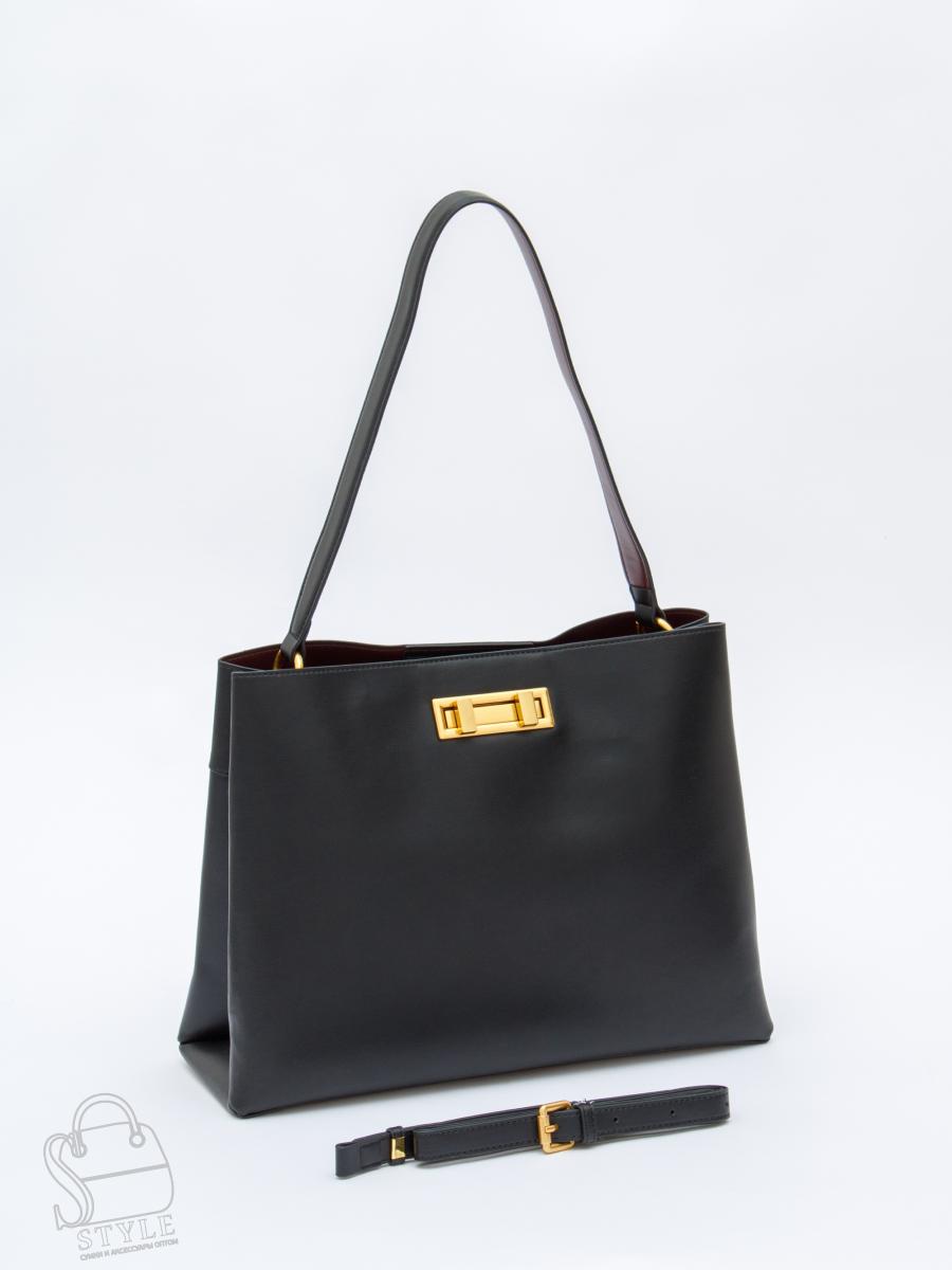 Стильная модель, выполнена из натуральной кожи. Дополнена золотистой фурнитурой.  Данная модель закрывается на вертушку. Носится в руке за встроенную ручку или на плече, в комплекте имеется съемный ремень с регулировкой длины. Каркас полужесткий. На дне предусмотрены ножки.