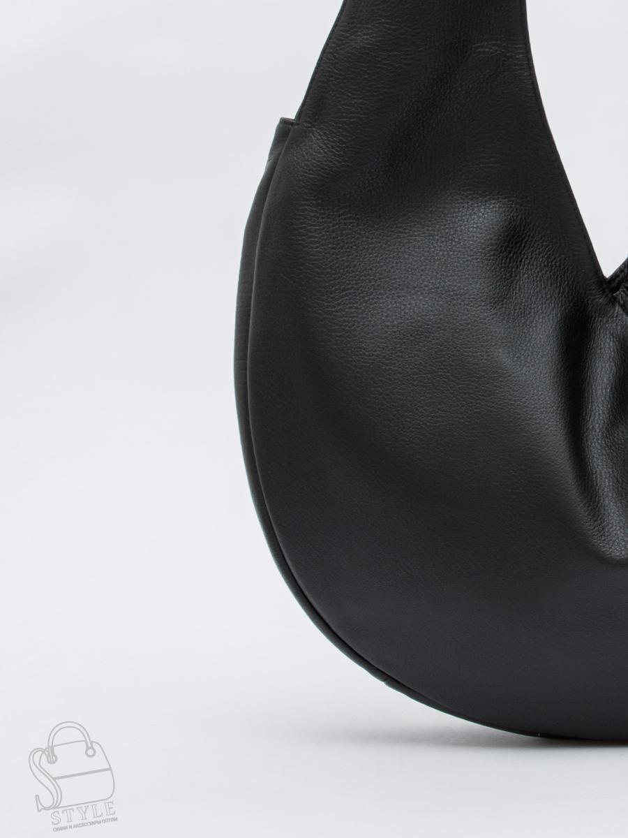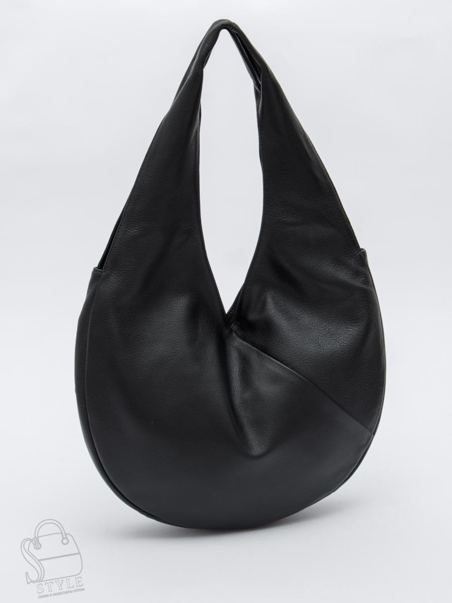 Модель-хобо, выполнена из натуральной кожи. Дополнена серебристой фурнитурой. Данная модель закрывается на молнию. Носится в руке или на плече за встроенные ручки. Каркас мягкий.