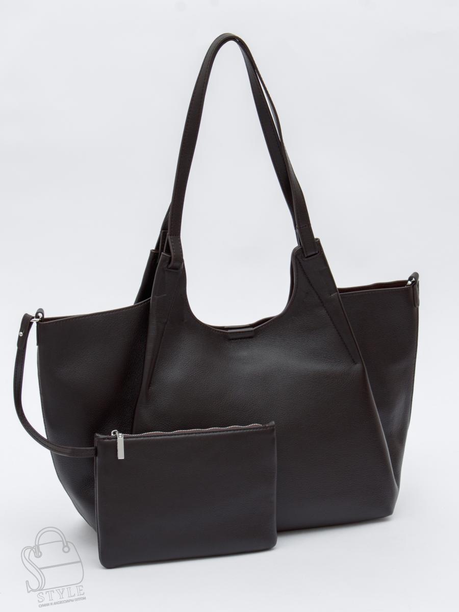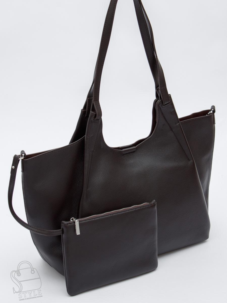 Вместительная модель, выполнен из натуральной кожи. Дополнен серебристой фурнитурой. Данная модель закрывается на кнопку. Носится в руке за встроенные ручки или на плече. Каркас жесткий. В комплекте имеется ключница.