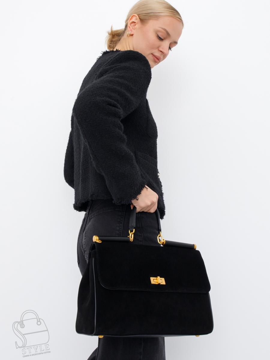 Сумка-сэтчел, выполнена из замши. Дополнена золотистой фурнитурой. Данная модель закрывается на клапан, носится в руке за встроенную ручку или на плече. В комплекте имеется ремень с регулировкой длины. Каркас полужёсткий. На дне предусмотрены ножки.