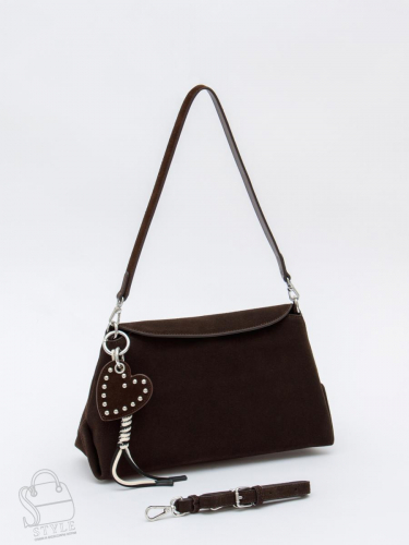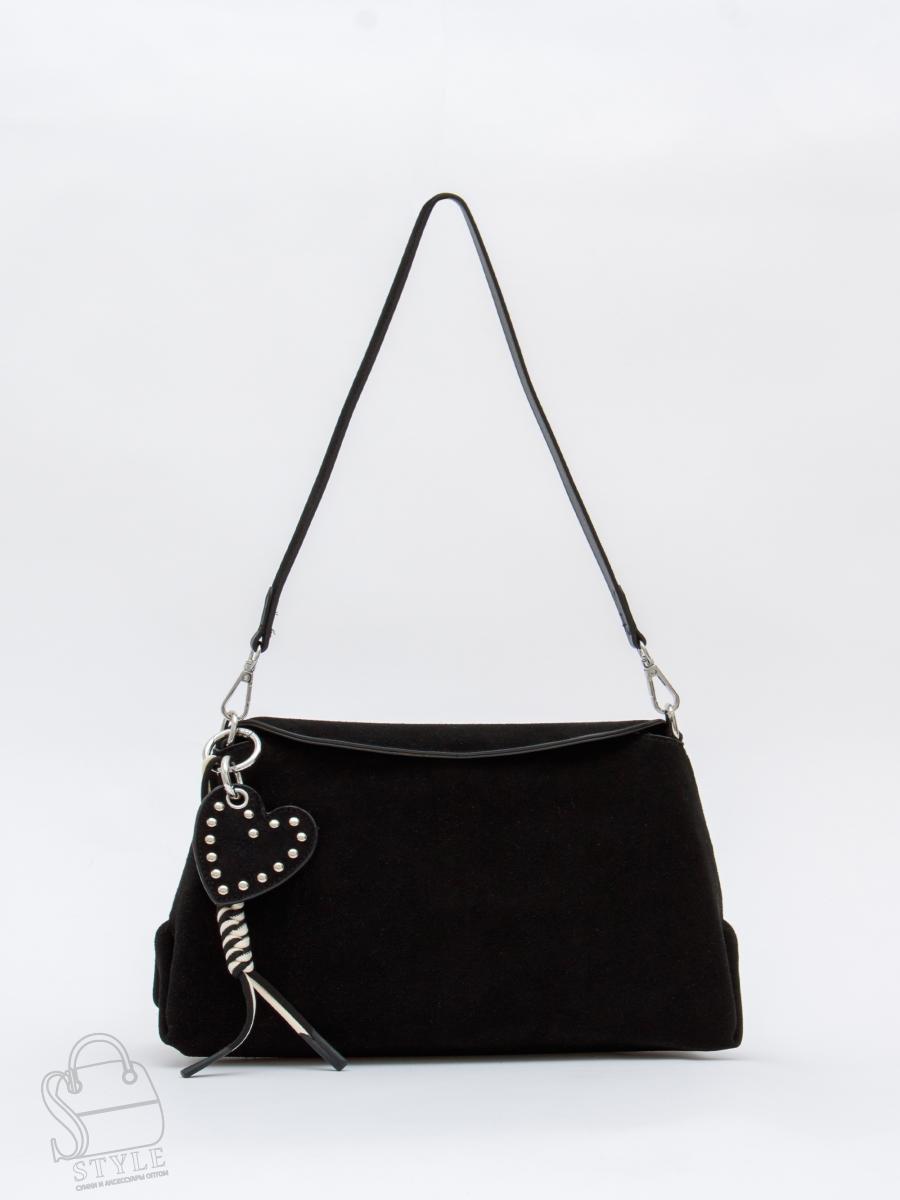 Стильная сумка, выполнена из натуральной замши. Декорирована съемным брелоком. Дополнена серебристой фурнитурой. Данная модель закрывается на клапан, носится в руке за съемную ручки. Или на плече, в комплекте имеется ремень с регулировкой длины. Каркас полужесткий.