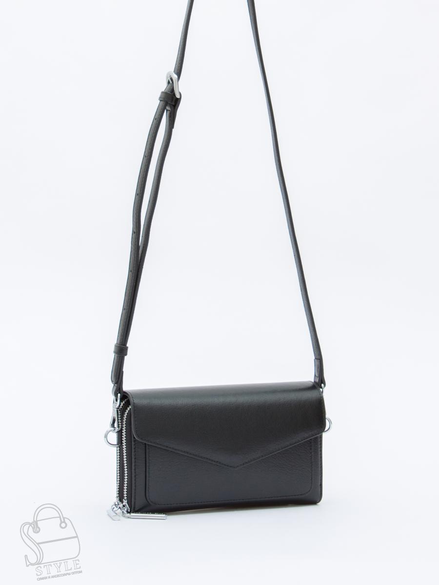 Сумка-кошелек, выполнена из натуральной кожи. Дополнена серебристой фурнитурой.  Данная модель закрывается на клапан. Носится на плече, съемный ремень регулируется по длине. Каркас жесткий.