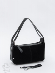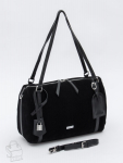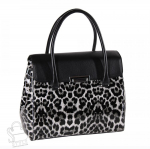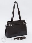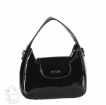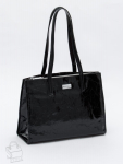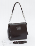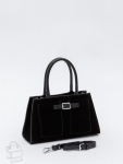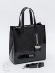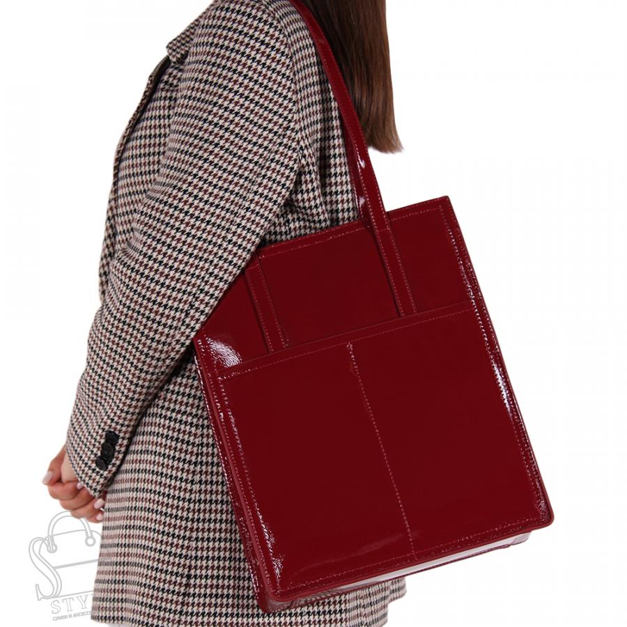 Стильная сумка, из натуральной лаковой кожи. Дополнена серебристой фурнитурой. Данная модель закрывается на молнию. Каркас жесткий. Носится в руке или на плече на удлиненных ручках.