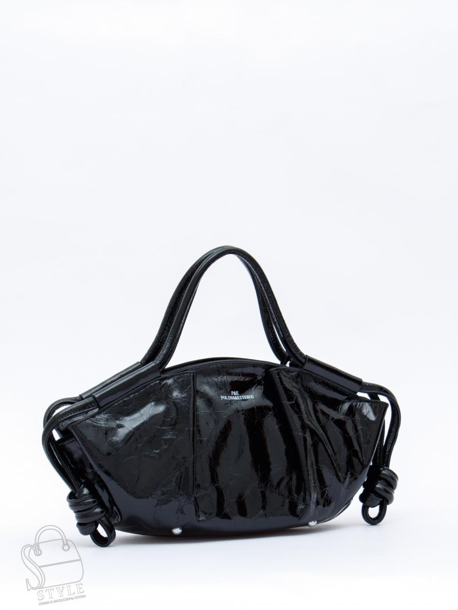 Модель-лодочка, выполнена из натуральной лаковой кожи. Дополнена серебристой фурнитурой. Декорирована узлами по бокам. Данная модель закрывается на молнию, носится в руке за встроенные ручки. Или на плече, в комплекте имеется ремень с регулировкой длины. Каркас мягкий. На дне предусмотрены ножки.