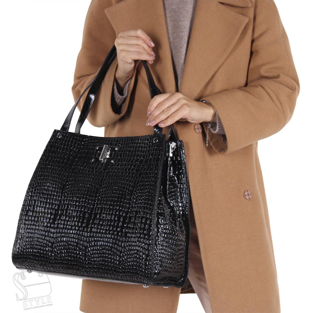 Вместительная модель, выполнена из натуральной фактурной кожи. Дополнена серебристой фурнитурой. Данная модель закрывается на молнию и на вертушку, носится на плече или в руке. В комплекте предусмотрен ремень с регулировкой длины и встроенные ручки. Каркас жесткий. На дне имеются ножки.