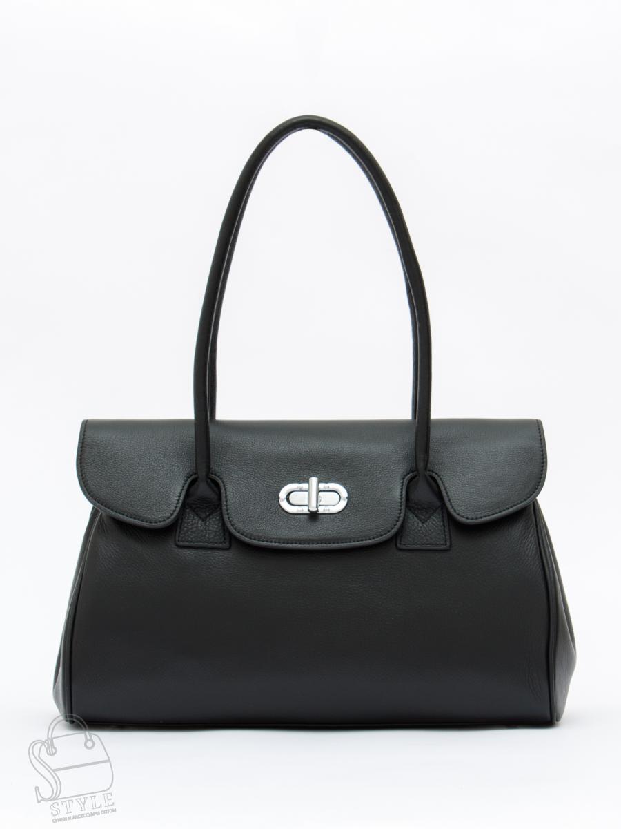 Базовая модель, выполнена из натуральной кожи. Декорирована пряжкой на клапане. Дополнена серебристой фурнитурой. Данная модель закрывается на клапан, носится на плече или в руке за встроенные удлиненные ручки. Каркас полужесткий. На дне имеются ножки.
