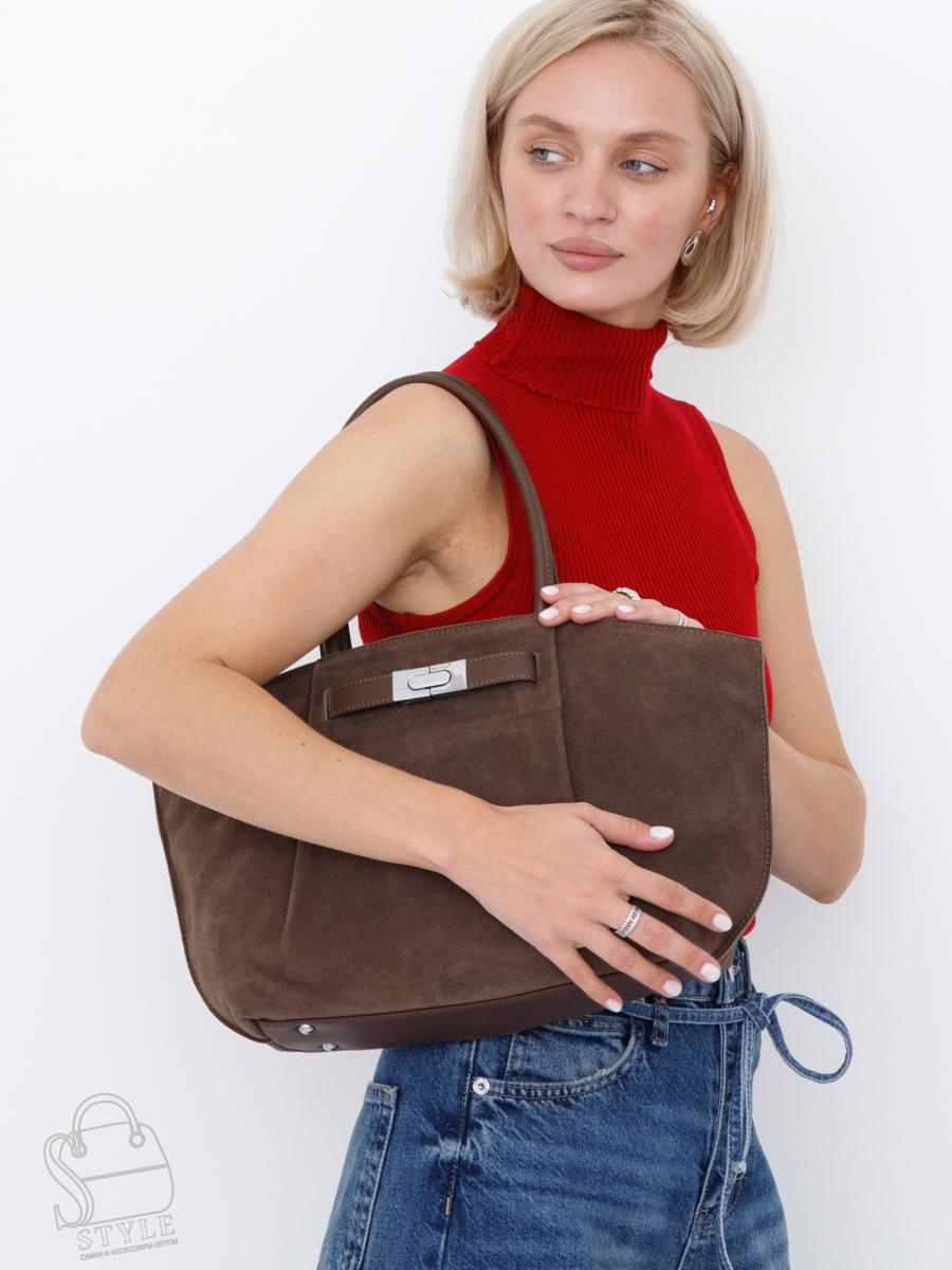 Сумка трендовой формы, выполнена из замши. Дополнена серебристой фурнитурой. Данная модель закрывается на молнию, носится в руке за встроенные ручки. Или на плече ,в комплекте имеется ремень с регулировкой длины. Каркас полужесткий.