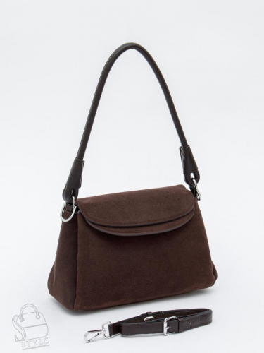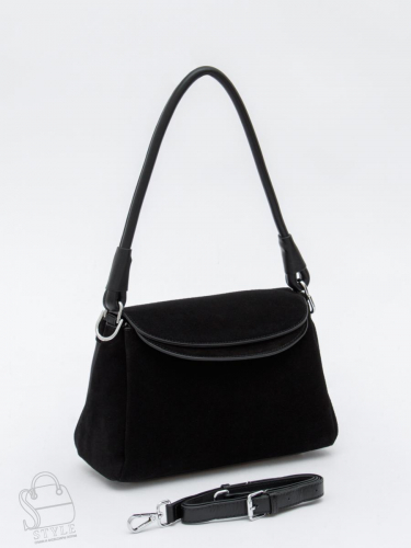 Базовая модель, выполнена из замши. Дополнена серебристой фурнитурой. Данная модель закрывается на клапан, носится в руке за съемную ручку. Или на плече, в комплекте имеется ремень с регулировкой длины. Каркас полужесткий. На дне предусмотрены ножки.