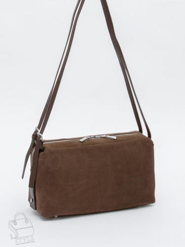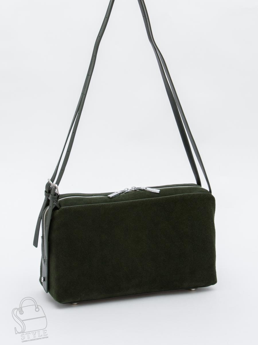 Стильная сумка, выполнена из натуральной замши.  Дополнена серебристой фурнитурой. Данная модель закрывается на молнию. Каркас мягкий. Носится на плече за встроенные ручки с регулировкой длины. На дне предусмотрены ножки.