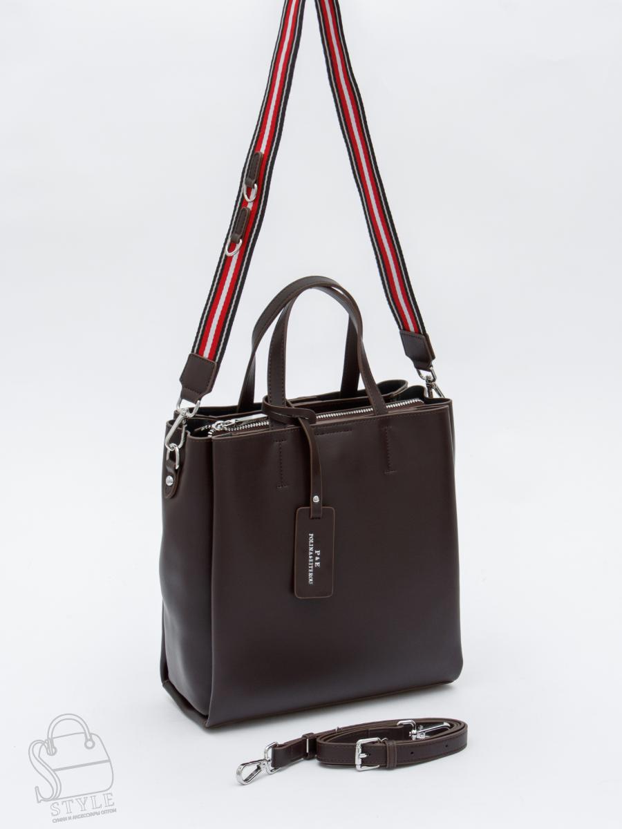 Вместительная модель, выполнена из кожи.  Декорирована брелоком. Дополнена серебристой фурнитурой. Данная модель закрывается на молнию, носится в руке за встроенные ручки или на плече. В комплекте имеется ремень с регулировкой длины и ремень-стропа. Каркас полужесткий.