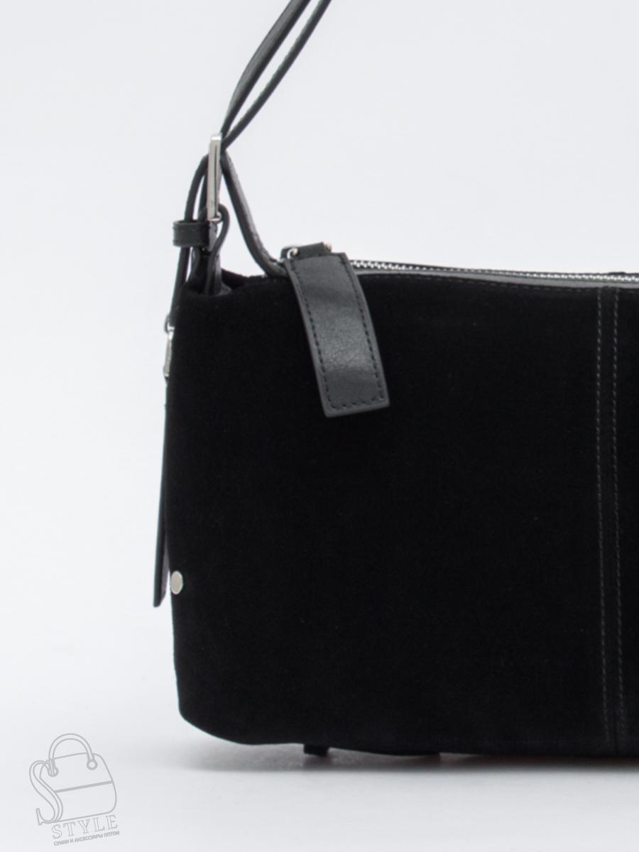 Базовая сумка, выполнена из замши. Декорирована брелоком на "собачке". Дополнена серебристой фурнитурой. Данная модель закрывается на молнию. Каркас мягкий. Носится в руке за встроенные ручки с регулировкой длины, или на плече. В комплекте имеется удлиняющий элемент.