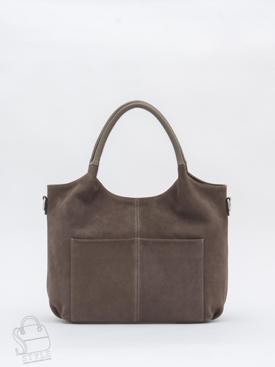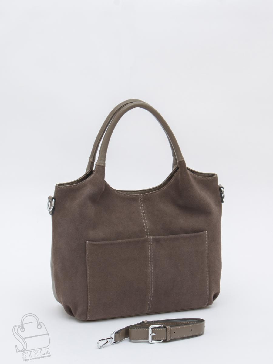 Базовая сумка, выполнена из натуральной замши и кожи. Дополнена серебристой фурнитурой. Данная модель закрывается на молнию, носится в руке за встроенные ручки. Или на плече, в комплекте имеется ремень с регулировкой длины. Каркас полужесткий.