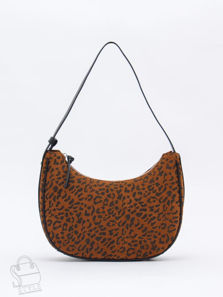 Сумка в форме полумесяц, выполнена из замши и кожи. Дополнена серебристой фурнитурой. Данная модель закрывается на молнии, носится в руке или на плече за встроенный ремень. Ремень регулируется по длине. Каркас полужесткий.