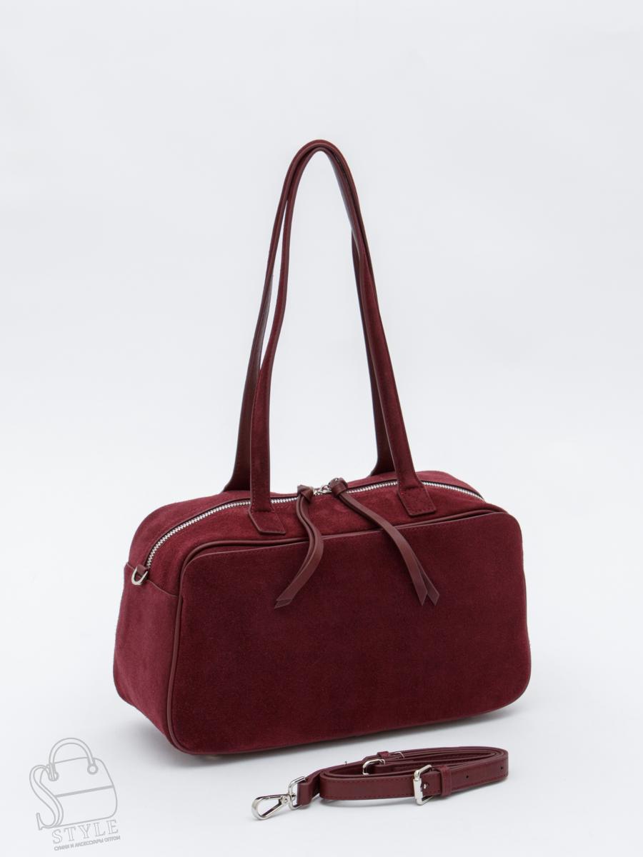 Вместительная модель, выполнена из замши. Дополнена серебристой фурнитурой. Данная модель закрывается на молнию. Каркас полужесткий. Носится в руке или на плече. В комплекте имеется съемный ремень с регулировкой длины. На дне предусмотрены ножки.