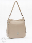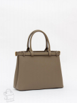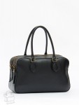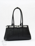 Базовая модель, выполнена из натуральной кожи. Декорирована брелоком. Дополнена  серебристой фурнитурой. Данная модель закрывается на молнию. Каркас жесткий. Носится в руке за встроенные ручки или на плече. В комплекте имеется съемный ремень с регулировкой длины. На дне предусмотрены ножки.