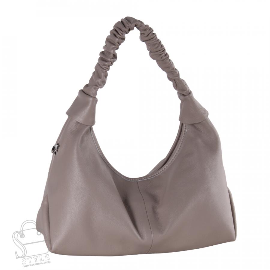 Модель в стиле хобо, выполнена из кожи. Декорирована складками на ручке. Дополнена серебристой фурнитурой. Данная модель закрывается на молнию. Каркас мягкий. Носится в руке за встроенную ручку или на плече. В комплекте имеется съемный ремень с регулировкой длины.
