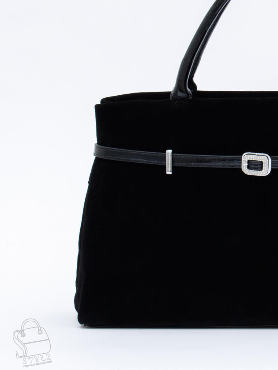 Базовая сумка, выполнена из замши. Декорирована ремнем на корпусе. Дополнена серебристой фурнитурой.  Данная модель закрывается на молнию. Носится  в руке за встроенные ручки или на плече. В комплекте имеется ремень с регулировкой длины. Каркас мягкий.