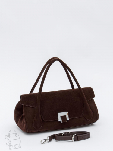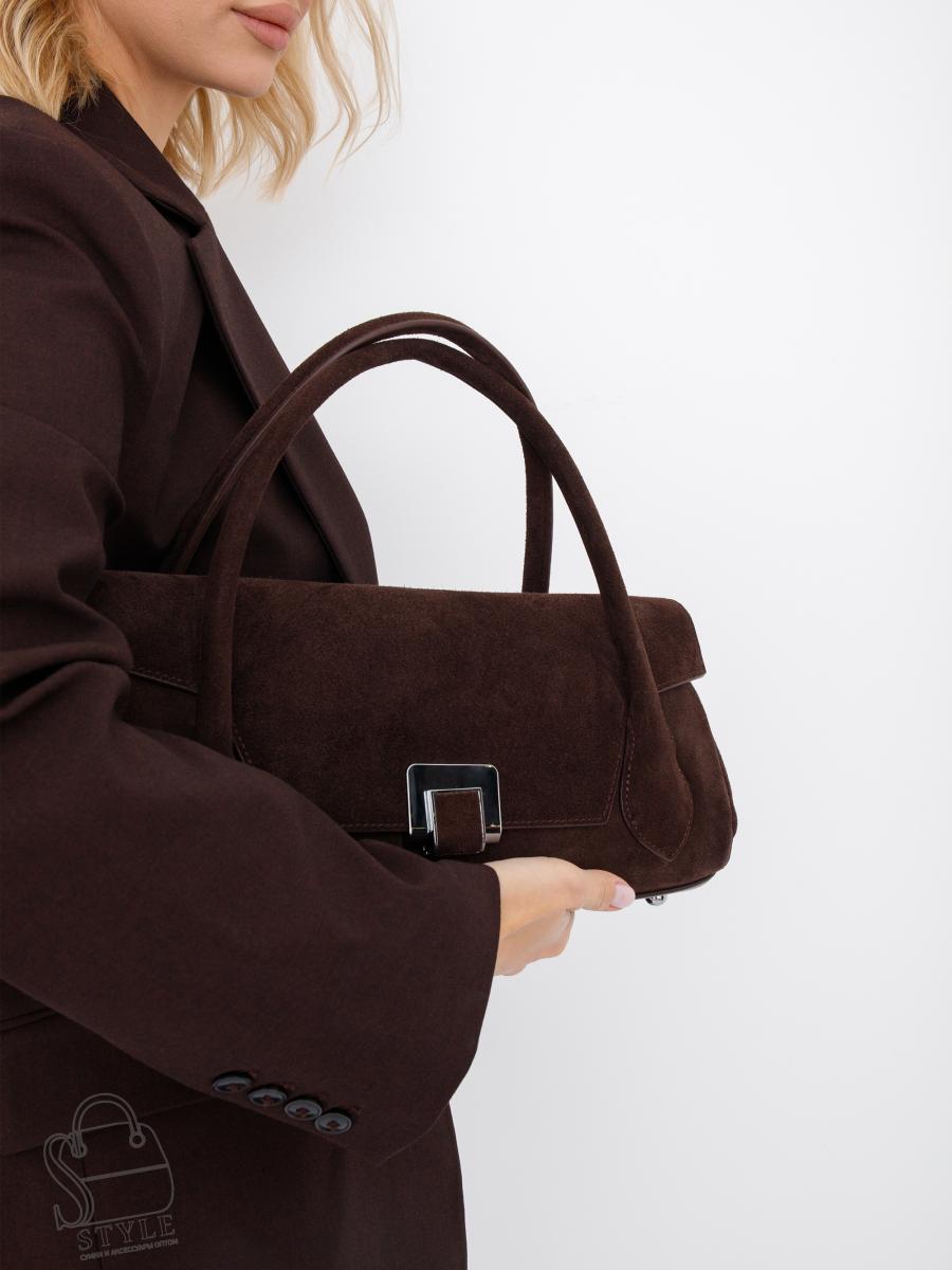 Актуальная сумка, выполнена из замши. Дополнена серебристой фурнитурой. Данная модель закрывается на клапан, носится в руке за встроенные ручки. Или на плече, в комплекте имеется ремень с регулировкой длины. Каркас полужесткий. На дне предусмотрены ножки.