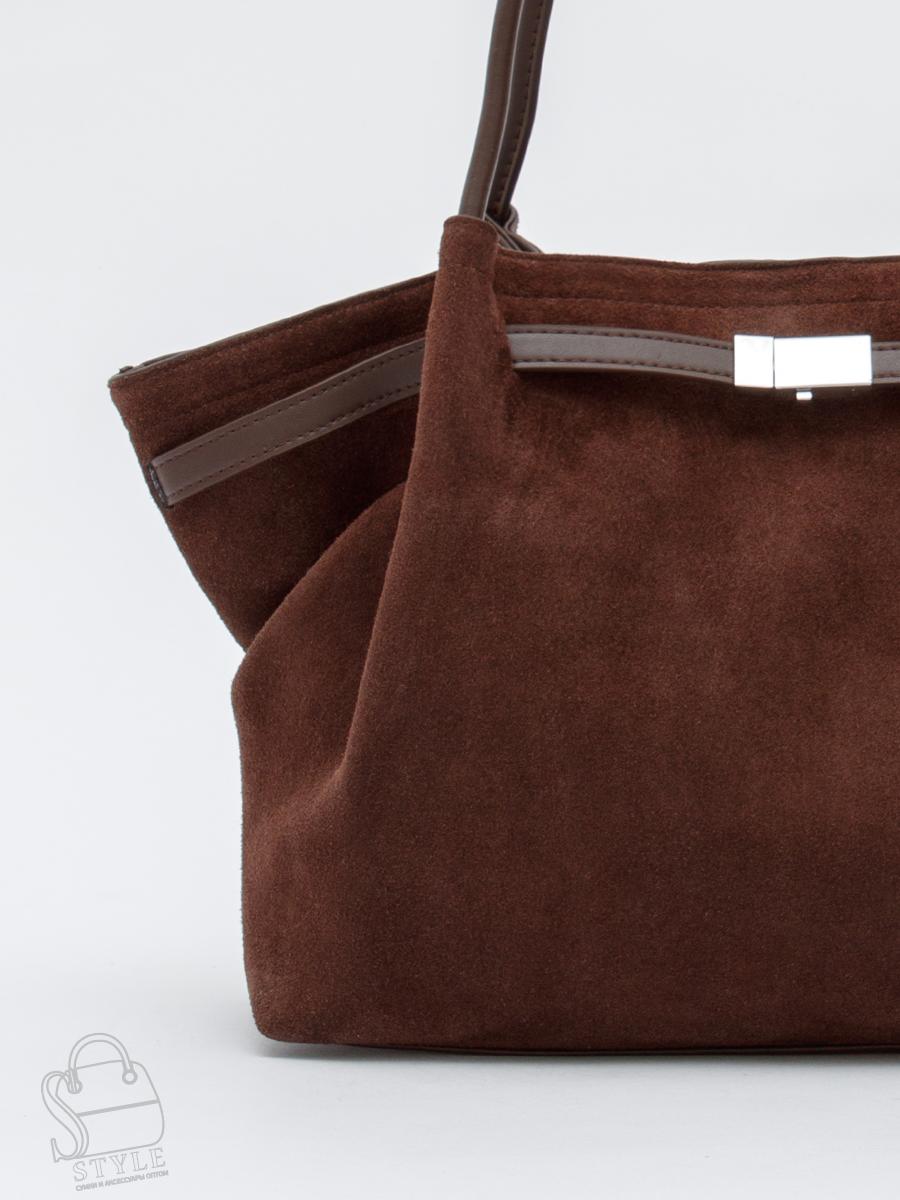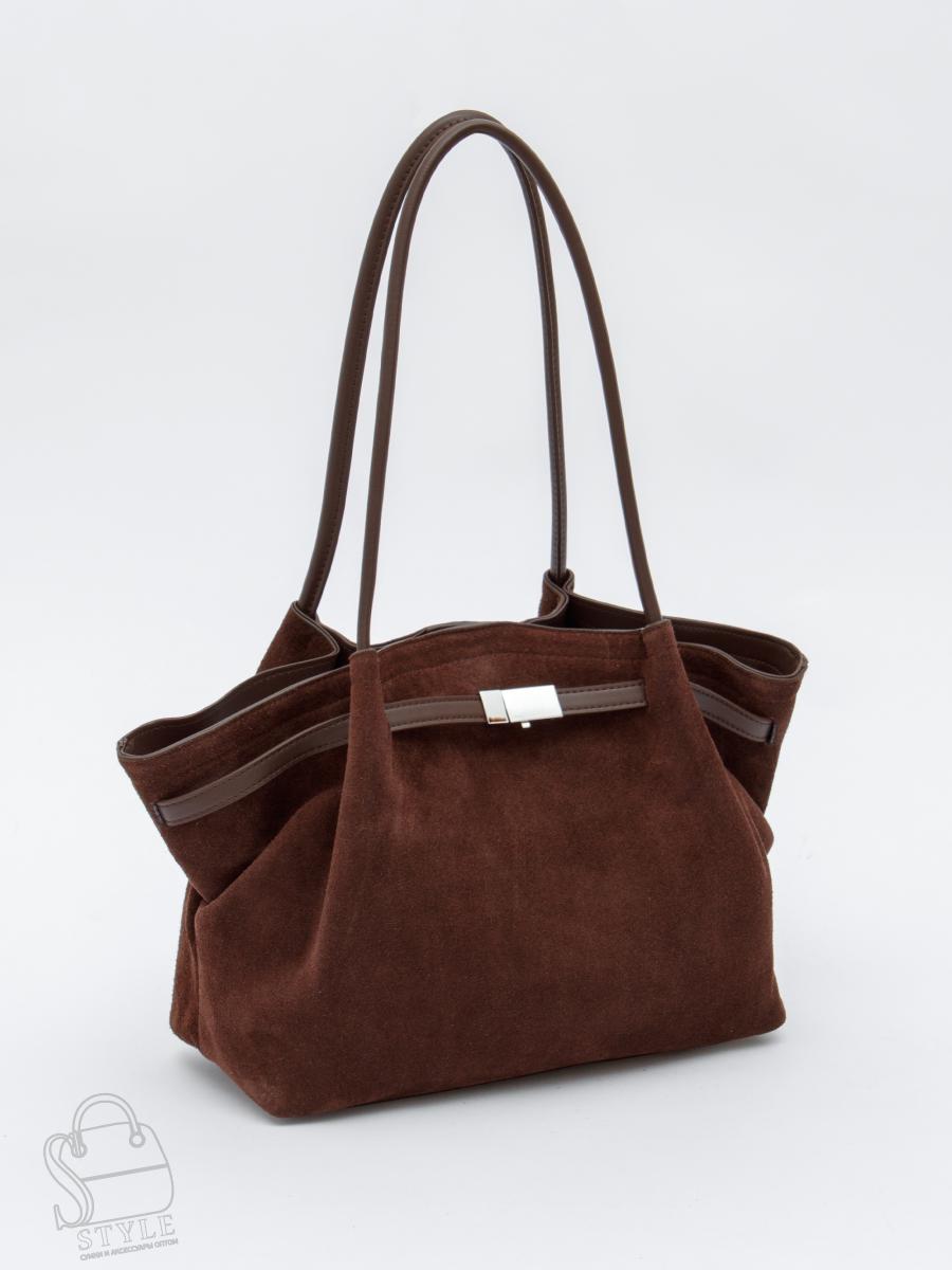 Стильная сумка, выполнена из натуральной замши. Декорирована ремнем на корпусе. Дополнена серебристой фурнитурой. Данная модель закрывается на кнопку. Носится в руке за встроенные удлиненные ручки или на плече. В комплекте имеется съемный ремень с регулировкой длины. Каркас мягкий.