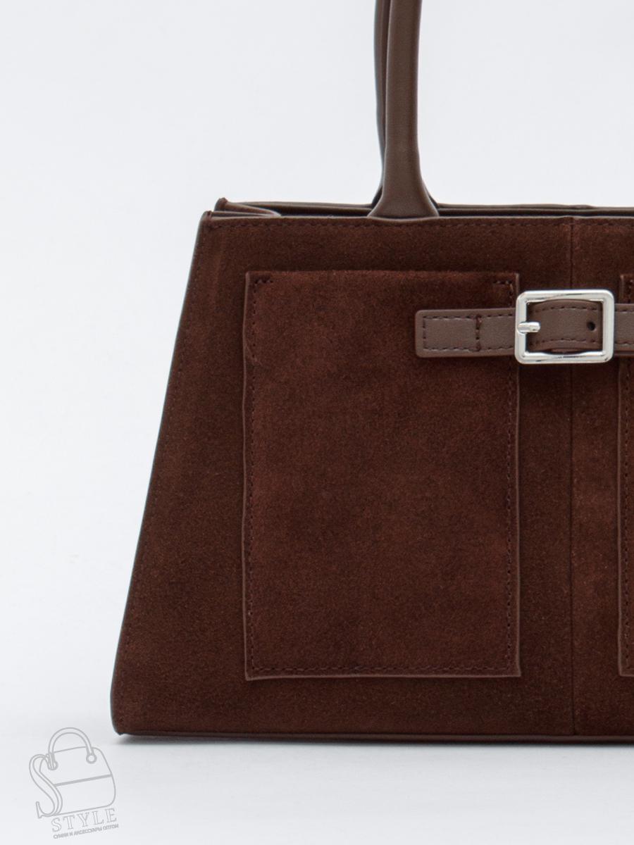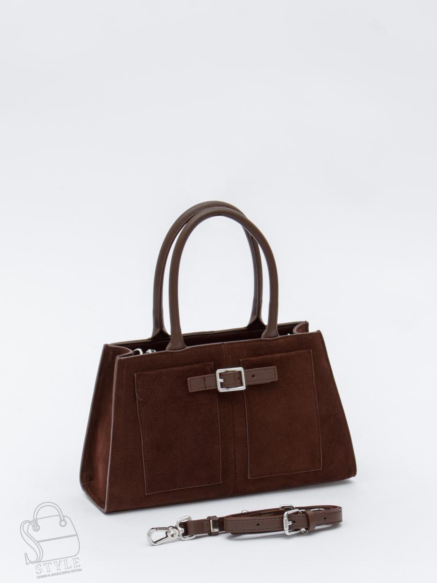Компактная модель, выполнена из натуральной замши. Декорирована ремнем на корпусе. Дополнена серебристой фурнитурой. Данная модель закрывается на молнию. Носится в руке за встроенные ручки или на плече. В комплекте имеется съемный ремень с регулировкой длины. Каркас жесткий.