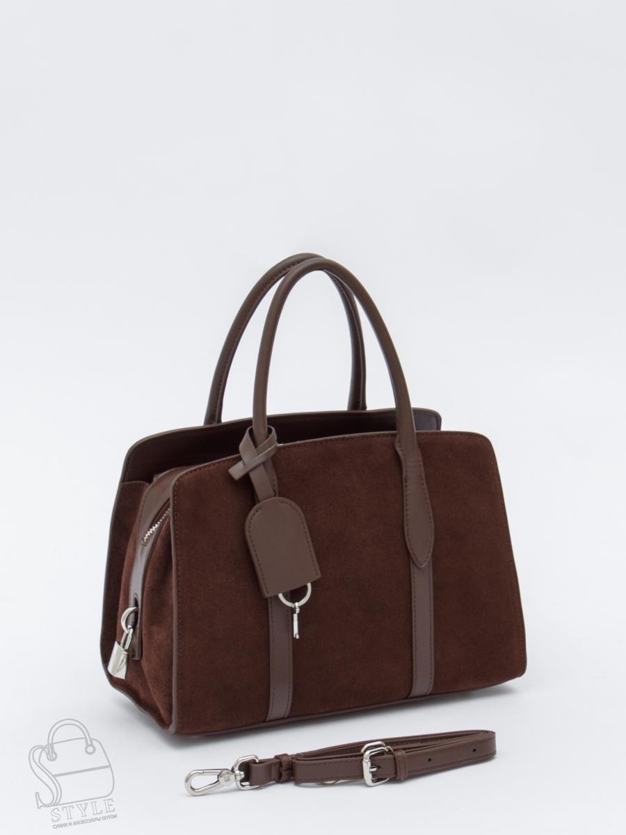 Базовая сумка, выполнена из замши. Декорирована брелоком. Дополнена серебристой фурнитурой. Данная модель закрывается на молнию. Каркас полужесткий. Носится в руке за встроенные ручки или на плече. В комплекте имеется съемный ремень с регулировкой длины. На дне предусмотрены ножки.