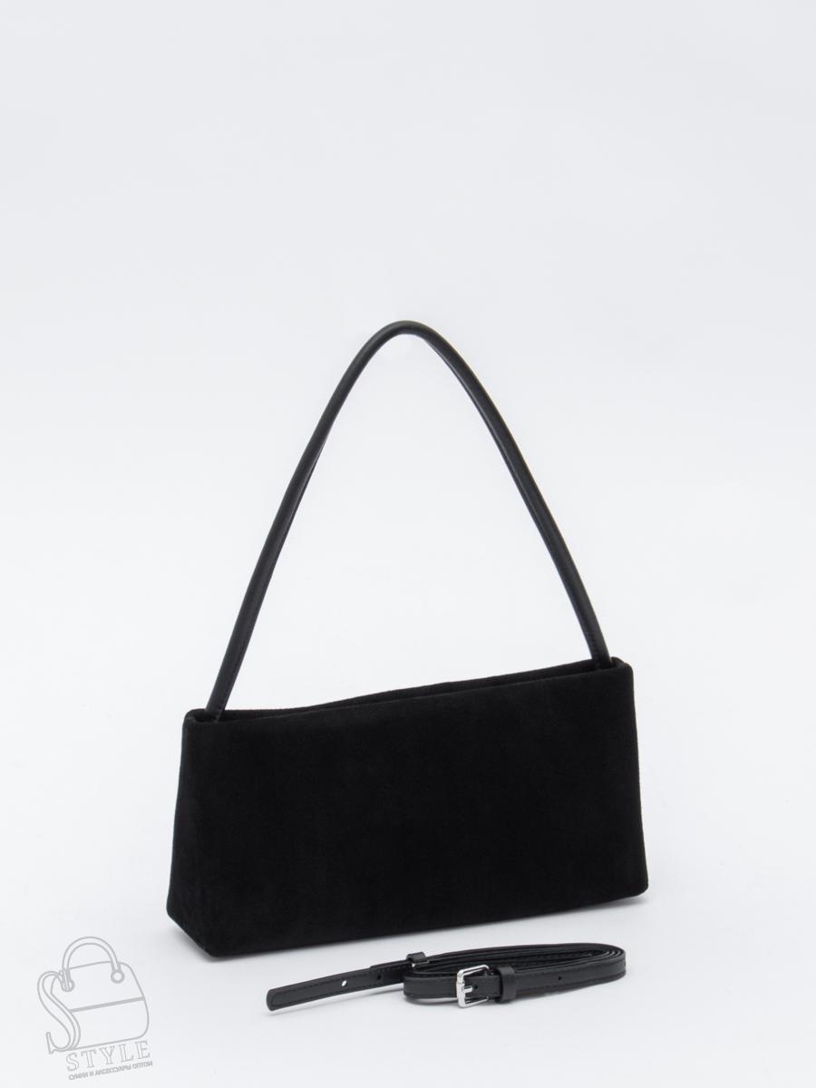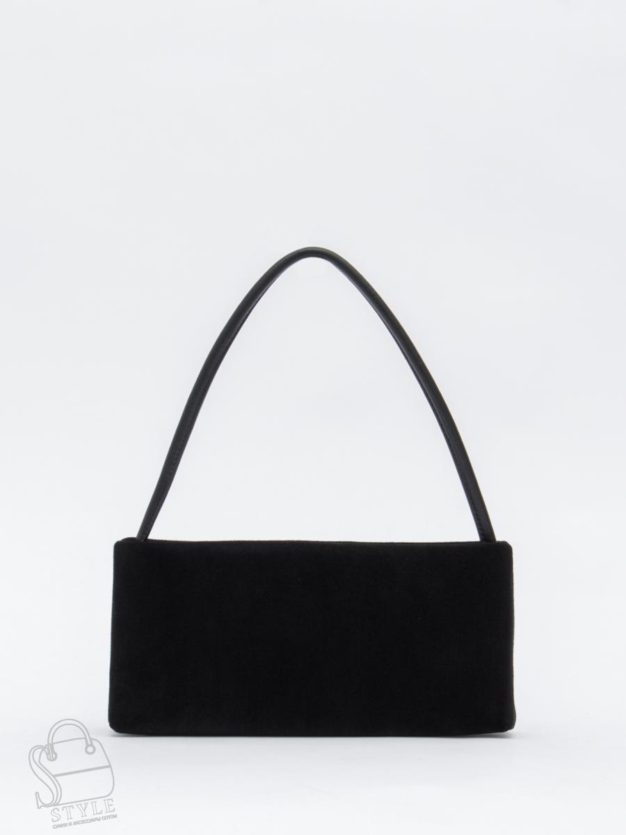 Небольшая базовая модель, выполнена из натуральной замши.  Дополнена серебристой фурнитурой. Данная модель закрывается на молнию. Каркас жесткий. Носится через в руке за съемную ручку или на плече. Плечевой ремень регулируется по длине.