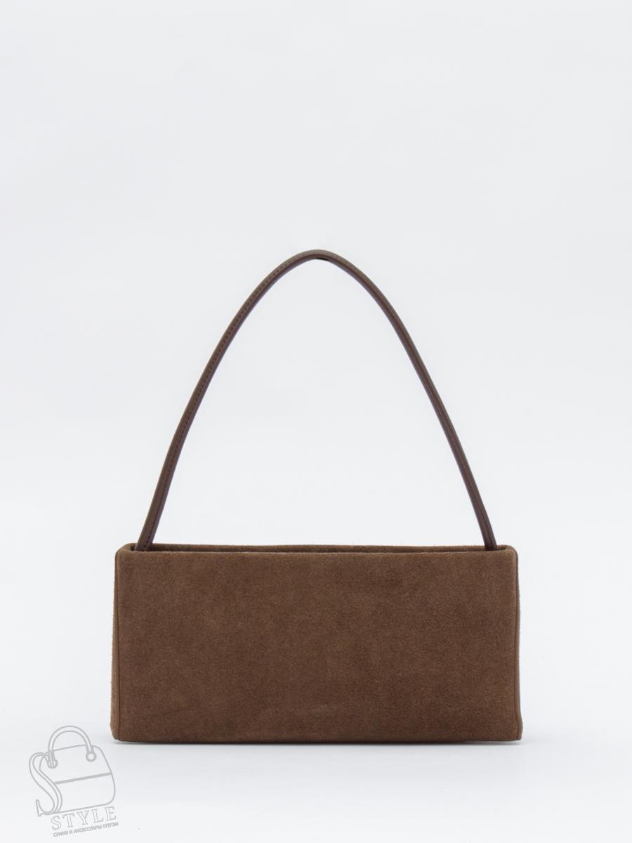 Небольшая базовая модель, выполнена из натуральной замши.  Дополнена серебристой фурнитурой. Данная модель закрывается на молнию. Каркас жесткий. Носится через в руке за съемную ручку или на плече. Плечевой ремень регулируется по длине.