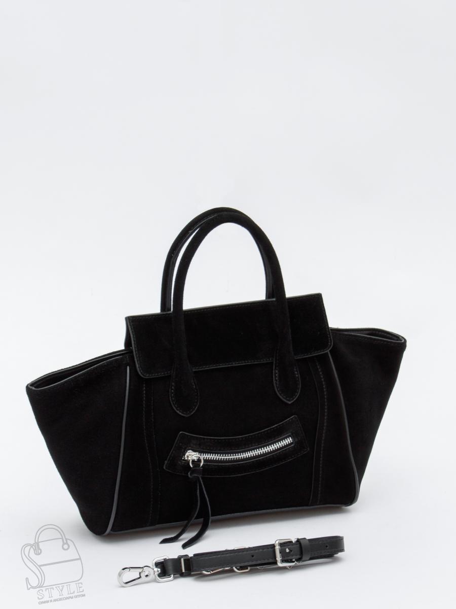 Сумка интересной формы, выполнена из замши. Дополнена серебристой фурнитурой. Данная модель закрывается на клапан, носится в руке за встроенные ручки или на плече на плече с помощью ремня. В комплекте предусмотрен ремень с регулировкой длины. Каркас полужесткий.